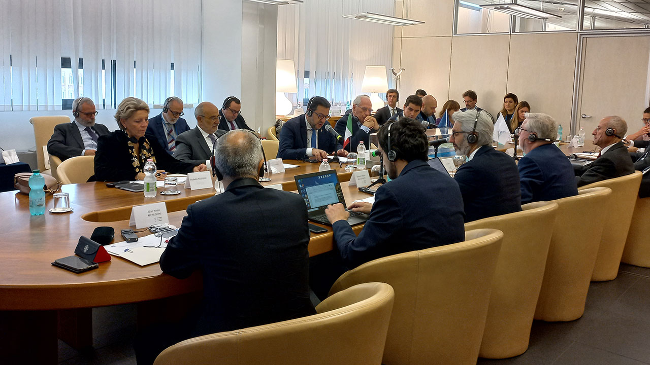 Il vicepremier e ministro delle Infrastrutture Matteo Salvini incontra il Coordinatore del corridoio TEN-T Scan-Med Pat Cox e l’Ad della Stretto di Messina Pietro Ciucci